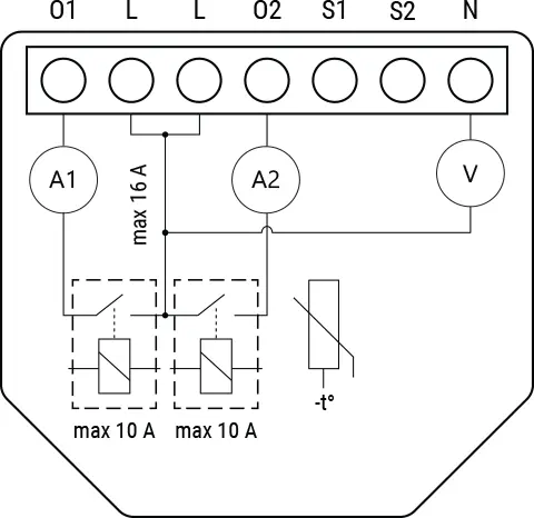 | Corrente máxima de comutação AC | 10 A (por canal), 16 A (total), 18 A (pico) |
